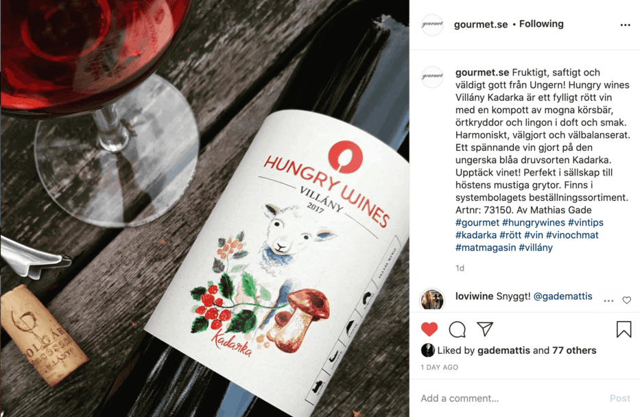 Den 3 september publicerades detta inlägg om Hungry Wines Kadarka på instagram från vin- och matmagasinet Gourmet.se!